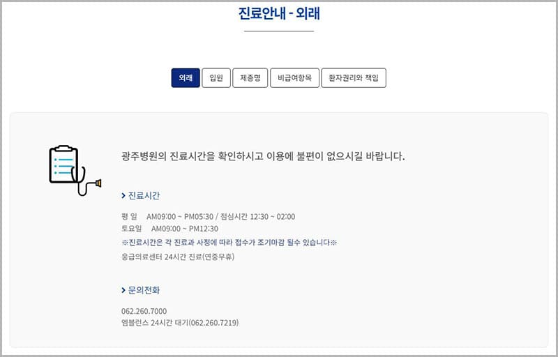 이상으로 광주병원 진료 안내, 진료과 소개, 건강검진센터 안내, 병원 이용안내 등에 대해서 알아봤습니다.