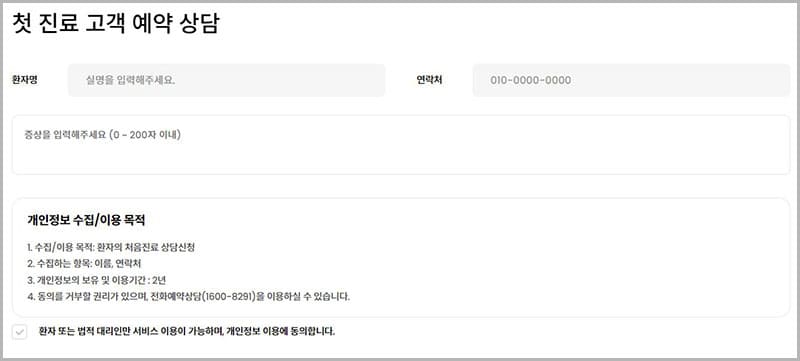 국제성모병원 진료 예약은 메인 페이지에서 바로 가능합니다. 우선 처음진료를 신청하시는 분은 “첫 진료예약 상담”에서 연락처를 남긴 후 “예약신청” 버튼을 눌러서 상담 신청을 해주시면 됩니다. 전문 상담원이 연락을 하여 진료에 필요한 부분을 도와줍니다.