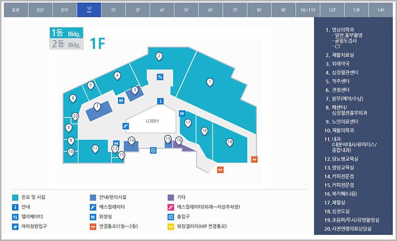 | 암센터 | 뇌신경센터 | 노인의료센터 | 심장혈관센터 | 폐센터 | 관절센터 |