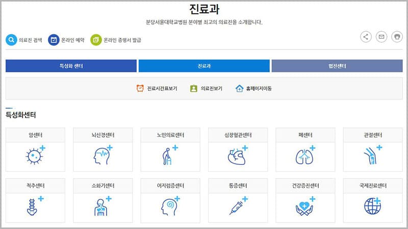 ✅ 분당서울대병원 진료과, 특성화센터, 협진센터 모두 보기