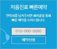 1) 처음진료 빠른예약 : 초진 환자의 경우 위의 이미지와 같이 홈페이지 메인에서 자신의 연락처를 남기면 전문 상담사를 통해 진료 예약을 쉽게 할 수 있습니다.