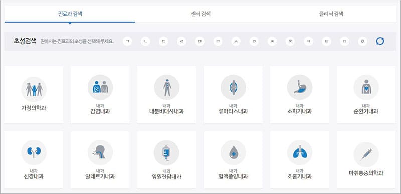가정의학과 | 감염내과 | 내분비대사내과 | 류마티스내과 | 소화기내과 | 순환기내과 |