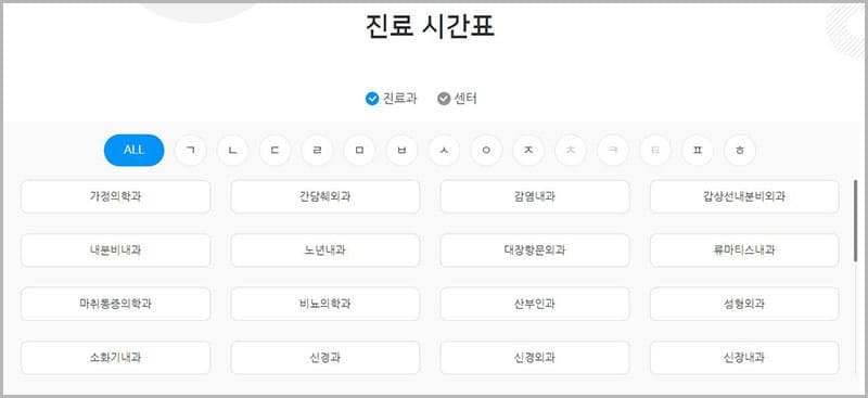 가정의학과간담췌외과감염내과갑상선내분비외과내분비내과