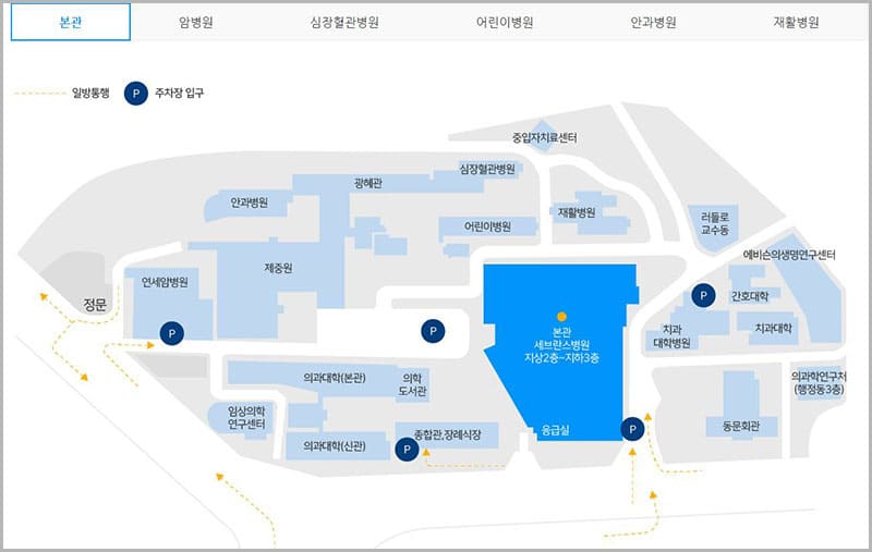 세브란스병원을 내원하시는 분들을 위해 주차 안내, 주차 요금 및 정산 안내, 오시는 길 등을 자세하게 안내하고 있습니다.