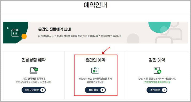 처음 진료를 보신 분은 다음 방문부터 온라인 진료 예약이 가능합니다. 온라인 예약을 위해서는 회원가입 및 로그인 또는 환자등록번호를 입력하셔야 정상적인 예약이 가능합니다.