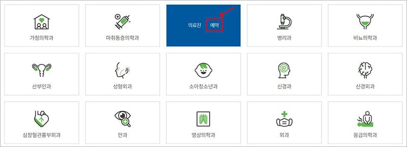 - 온라인 예약 : 온라인 예약 메뉴를 통해 진료과, 의료진, 질병 등을 검색하여 쉽고 빠르게 예약을 할 수 있습니다. 홈페이지 회원으로 먼저 가입하셔야 합니다.