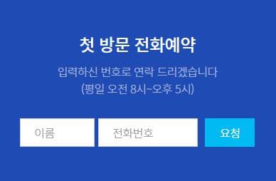 병원에 처음 방문하시는 분들의 진료 예약을 도와드리기 위한 서비스로, 홈페이지 내 ‘첫 방문 전화 예약’ 서비스에서 성함, 연락처를 남기면 전문 상담사가 연락을 드려 쉽고 빠르게 예약을 할 수 있도록 도와 드립니다.