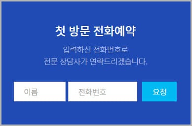 병원에 처음 방문하시는 분들의 진료 예약을 도와드리기 위한 서비스로, 홈페이지 내 ‘첫 방문 전화 예약’ 서비스에서 성함, 연락처를 남기면 전문 상담사가 연락을 드려 쉽고 빠르게 예약을 할 수 있도록 도와 드립니다. 이용 가능 시간은 평일 오전 8시 ~ 오후 5시, 토요일 오전 8시 ~ 12시까지입니다.