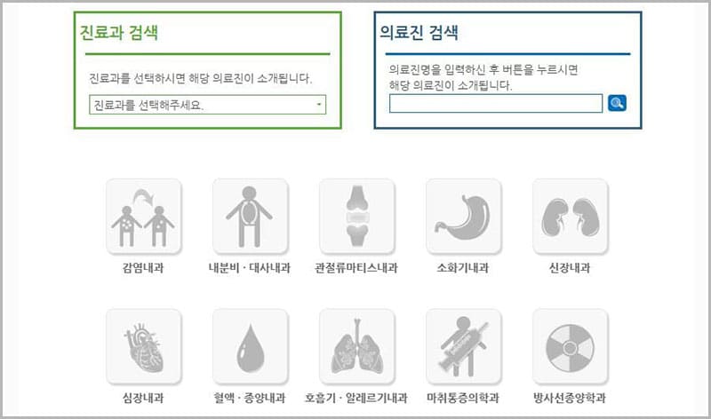 | 감염내과 | 내분비·대사내과 | 관절류마티스내과 | 소화기내과 | 신장내과 |
