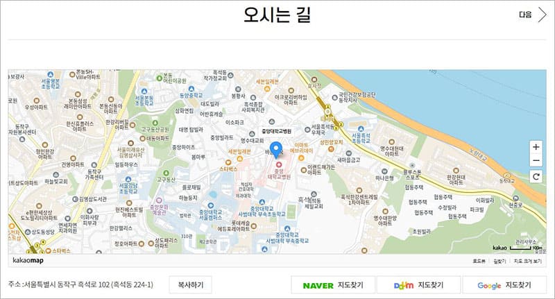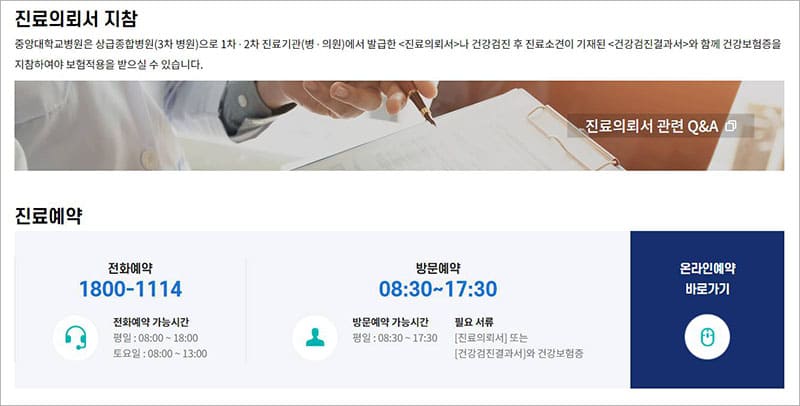 중앙대학교병원 홈페이지 안내