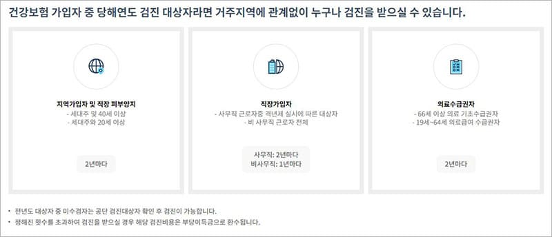 | 예약 안내 | 검사종류 및 비용 안내 | 국민건강보험공단 건강검진 검사항목 | 건강검진절차 | 검진유의사항 |