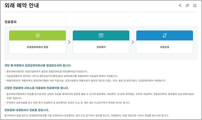 이상으로 충북대학교병원 예약 신청 방법, 건강검진 안내, 진료과 및 외래 진료 안내, 병원 이용 안내 등에 대해 자세하게 알아봤습니다.