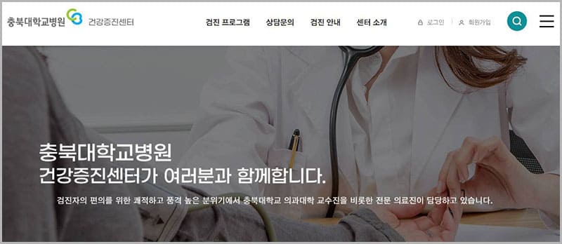 1) 충북대학교병원 건강증진센터 홈페이지에 접속하세요.