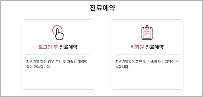 병원 홈페이지에 회원가입 후 이용하실 수 있으며, 병원 환자 중에서 회원가입이 안 된 경우에는 비회원 로그인 후 인터넷 예약을 이용하실 수 있습니다. 인터넷 예약은 24시간 이용 가능합니다.